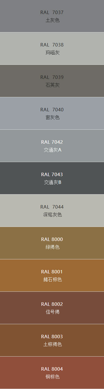 什么是RAL色卡?自從1927年,當RAL涉入色彩時,就創(chuàng)建了一種統(tǒng)一的語言,為豐富多彩的顏色建立標準統(tǒng)計和命名,這些標準在世界范圍內被廣泛的理解和應用。 4位數的RAL顏色作為顏色標準已達70年之久,至今為止已發(fā)展到200多種。無光澤的顏色基礎色卡為RAL-840HR,有光澤的為841-GL,這些顏色基本色塊滿足了大范圍的應用,已被許多重要公司及研究機構所使用。RAL-840HR及RAL-841GL 顏色注冊都作為顏色樣本應用于設計中,同時它們也包括了安全和信號色符合DIN及ISO規(guī)定的顏色要求。